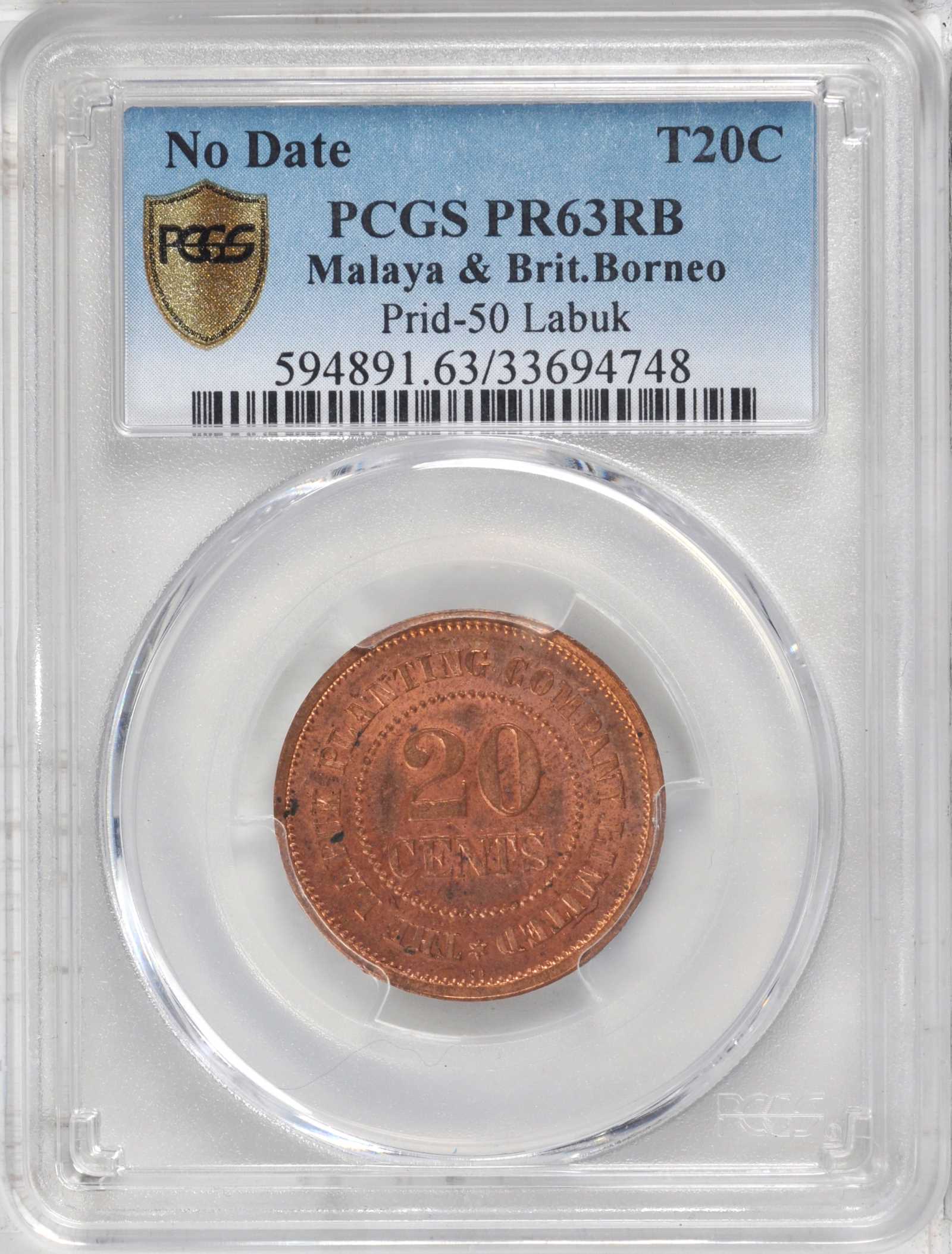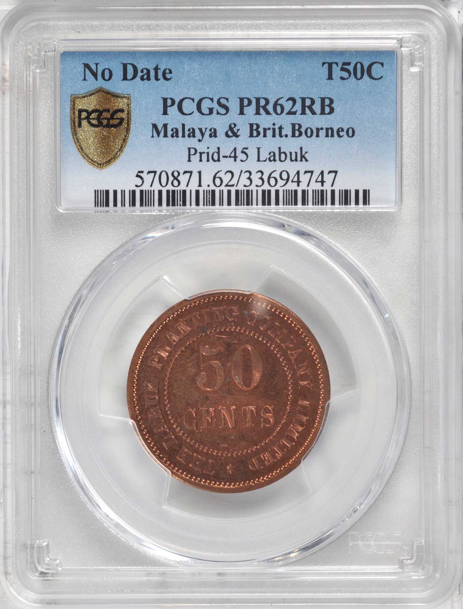 MALAYA AND BRITISH BORNEO. Labuk Tobacco Plantation Tokens, ND (prior to 1925). PCGS PROOF-62 RB to PROOF-63 Secure Holders.